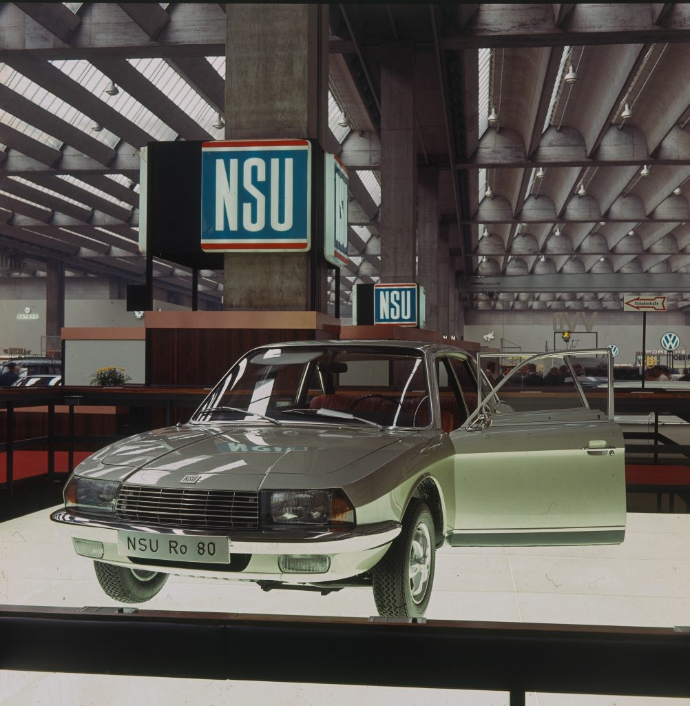 Eigentlich wollte Mazda schon 1965 seinen spacigen Sportwagen Cosmo mit Wankelmotor nach NSU-Lizenz auf der IAA landen lassen, aber NSU verhinderte das. Die Neckarsulmer, ab 1969 mit Audi vereint, hatten das Antriebsaggregat, „dem die Zukunft gehört“, wie die Medien unisono meinten, im schicken NSU Wankel Spider in Serie gebracht und bereiteten für 1967 die futuristische Wankel-Limousine Ro 80 vor. Ein Auto, das die gleich nebenan stehenden Heckflossen-Mercedes antiquiert aussehen ließ. „Ihr Sohn wird einen Beruf ergreifen, den es morgen erst gibt. Warum aber schließen Sie bei Ihrem Auto Kompromisse?“, fragte die Werbung. Trotzdem kauften am Ende nur gut 37.000 Avantgardisten den unausgereift in Serie gebrachten Ro 80, der trotz seines Claims „Vorsprung durch Technik“ zum kommerziellen Mega-Flop mutierte. Weitsichtig fuhr Mercedes deshalb seinen Wankel-Superstar C111-I von der IAA 1969 direkt in die Asservatenkammer – nur Mazda gibt dem Wankel bis heute eine Chance.