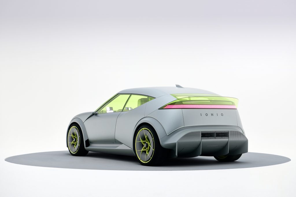 Das Konzeptfahrzeug wird lediglich von einem Motörchen angetrieben, mit dem der Wagen auf die Showbühnen rollen kann. Beim realen Kompakten wird das 2026 natürlich deutlich anders sein, auch wenn sich Martinet da mit konkreten Hinweisen noch zugeknöpft gibt. Sicher ist aber schon, dass der Ioniq 3 die 400-Volt-Variante der E-GMP-Plattform nutzen wird und auch eine softwarezentrierte Architektur bekommt. Damit sind Over-the-air-Updates, hohe Rechnerleistungen und schnelle Verbindung in die Cloud möglich – Basis für neuartige Assistenzsysteme oder Infotainment-Angebote.