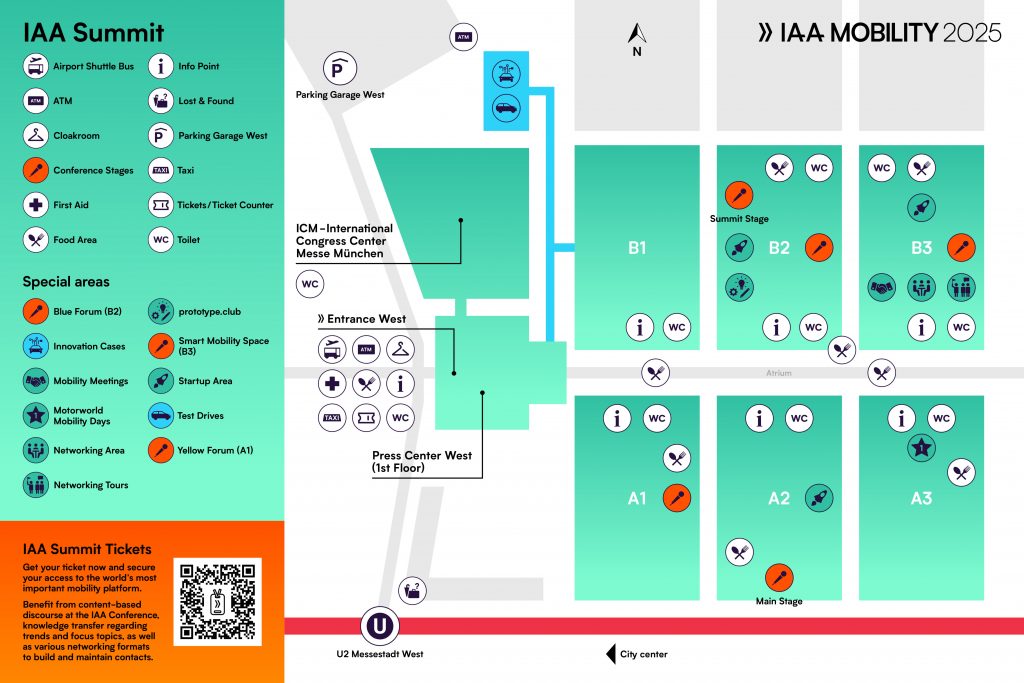 Die Messe ist wie in den Vorjahren in zwei Bereiche gegliedert: Die Präsentationen und Foren auf dem Messegelände in Riem richten sich vor allem an Fachbesucher, Journalisten und Branchenakteure; parallel dazu bietet der „Open Space“ in der Innenstadt ein offenes Programm mit Ausstellungen, Testflächen und Veranstaltungen für die breite Öffentlichkeit. Während für die Messe-Hallen in der Regel ein kostenpflichtiges Summit- oder Tagesticket benötigt wird, lassen sich die Innenstadt-Angebote gratis erleben. Die Erfahrungen aus den vorherigen Ausgaben zeigen: Wer nicht beinharter Autofan oder beruflich interessiert ist, kann sich tatsächlich ruhig auf die City beschränken. Dort sind die wichtigsten und interessantesten Fahrzeugneuheiten zu sehen.