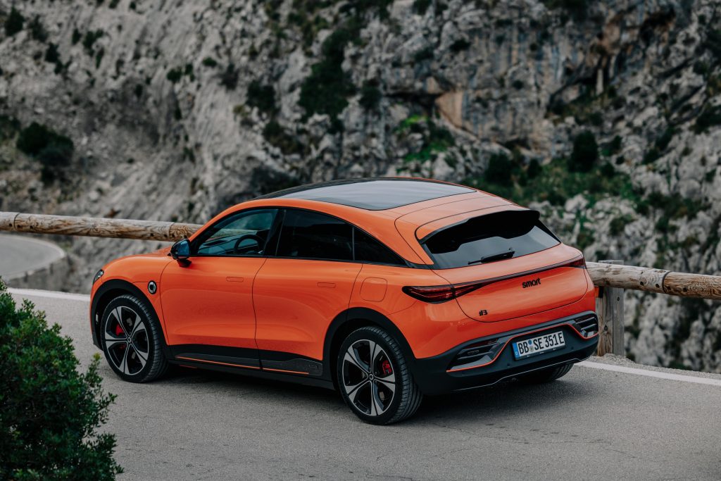 Das gilt auch für die Leistung. Brabus steht bei Smart seit jeher für zusätzlichen Schub. Doch mit Allradantrieb, zwei E-Motoren und 315 kW beziehungsweise 428 PS betritt die Marke neues Terrain, was Fahrdynamik angeht. Möglich macht das moderne Elektroantriebstechnik aus dem Geely-Konzern, der auch Marken wie Polestar und Lotus zu neuen Leistungsdimensionen verholfen hat. Im Fall des #3 geht das ganz ohne Lärm und Abgas. Leise, sauber und auf Wunsch brachial beschleunigt der Stromer, wie ein hungriger Dackel, der das Rascheln der Wurstverpackung hört.