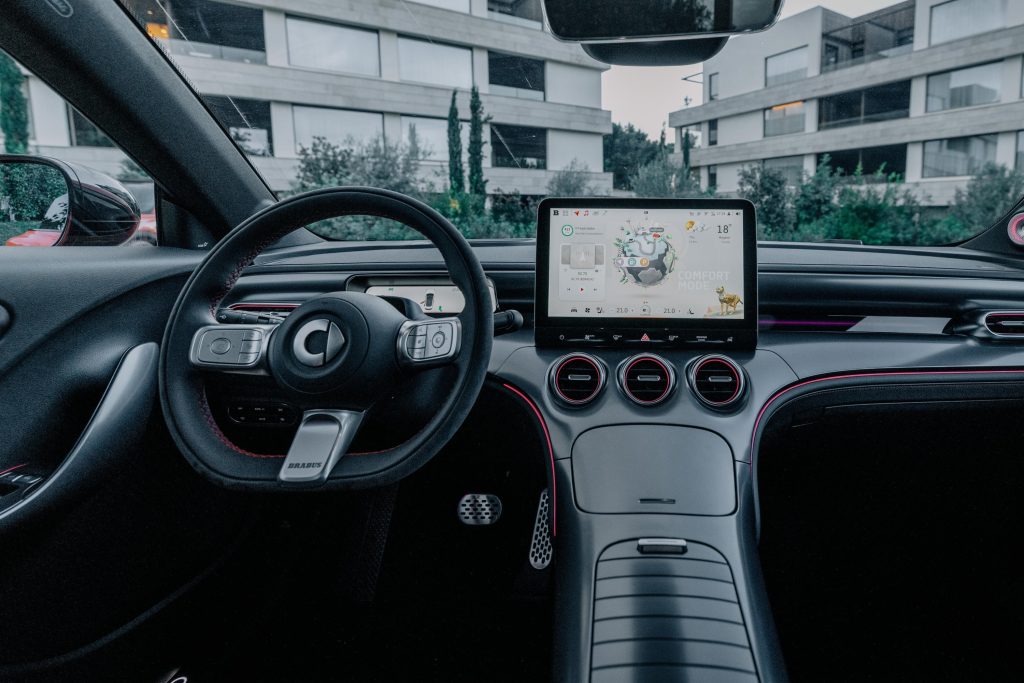 Besonders eindrucksvoll wird das im Brabus-Modus. Der Schub trifft den Fahrer wie ein Tritt in den Rücken, ohne dass sich das Fahrzeug dabei angestrengt anfühlt. Mit entspannter Souveränität setzt der #3 Gasbefehle um und regelt auch bei ambitioniertem Tempo sehr kontrolliert. 3,7 Sekunden sollen für den Sprint auf Tempo 100 genügen, bei 185 km/h wird der Vorwärtsdrang reglementiert. Dabei wirkt der Wagen, als wäre da noch deutlich mehr drin.