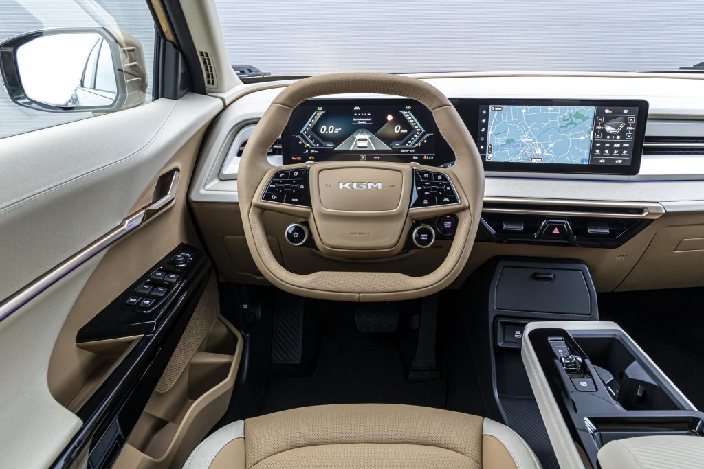 Sogar gehobenen Ansprüchen wird das schicke KGM-Modell in puncto Ausstattung gerecht. Großzügig ist diese bereits in der Core genannten Basis, mit der es bei 35.800 Euro losgeht. An Bord sind dann Parkpiepser, Tempomat, beheizbares Lederlenkrad, 20-Zoll-Leichtmetallräder, das Infotainmentsystem mit Navigation und Smartphone-Integration, Zwei-Zonen-Klimaautomatik, Ledersitzbezüge und Sitzheizungen hinten. Unser Testexemplar in der Topversion Lux kostete rund 43.500 Euro. Neben der Metallic-Farbe Royal Copper (700 Euro) und dem beige-braunem Interieur (500 Euro) verwöhnte uns der Koreaner noch mit E-Heckklappe, Sechsgang-Automatik, Abblendautomatik für Innenspiegel, Keyless-go, Abstandtempomat, 360-Grad-Kamerasystem, Sitzbelüftung, elektrischer Sitzverstellung sowie eine sehr lange Liste nicht zu aufdringlicher Assistenzsysteme.